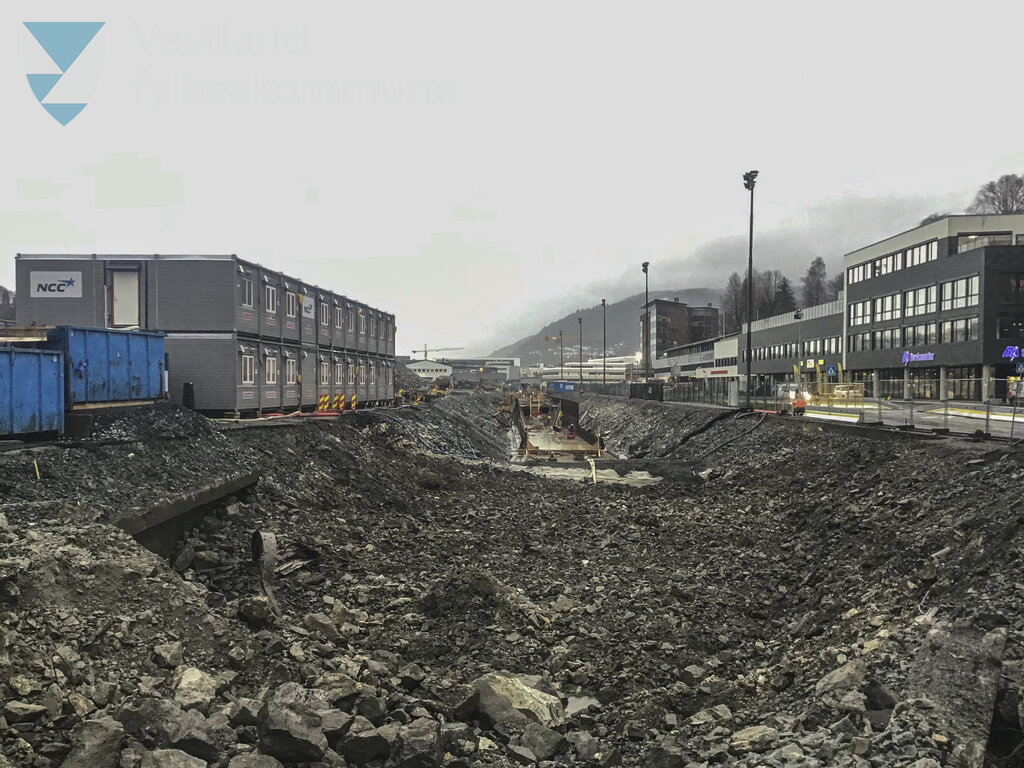 Historiske bilete av utbyggingen av Bybanen linje 2 Mindemyren haldeplass
