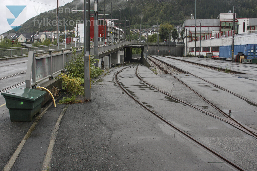 Historisk bilete frå bygginga av Kronstad haldeplass for Bybanen linje 2 til Fyllingsdalen
