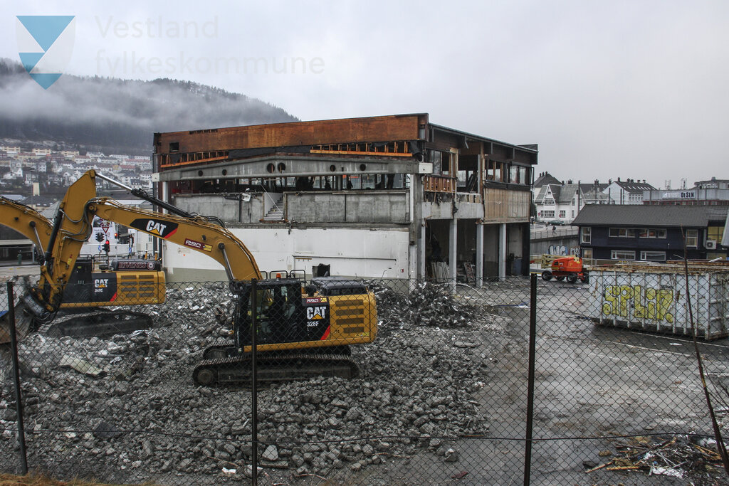 Historisk bilete frå bygginga av Kronstad haldeplass for Bybanen linje 2 til Fyllingsdalen