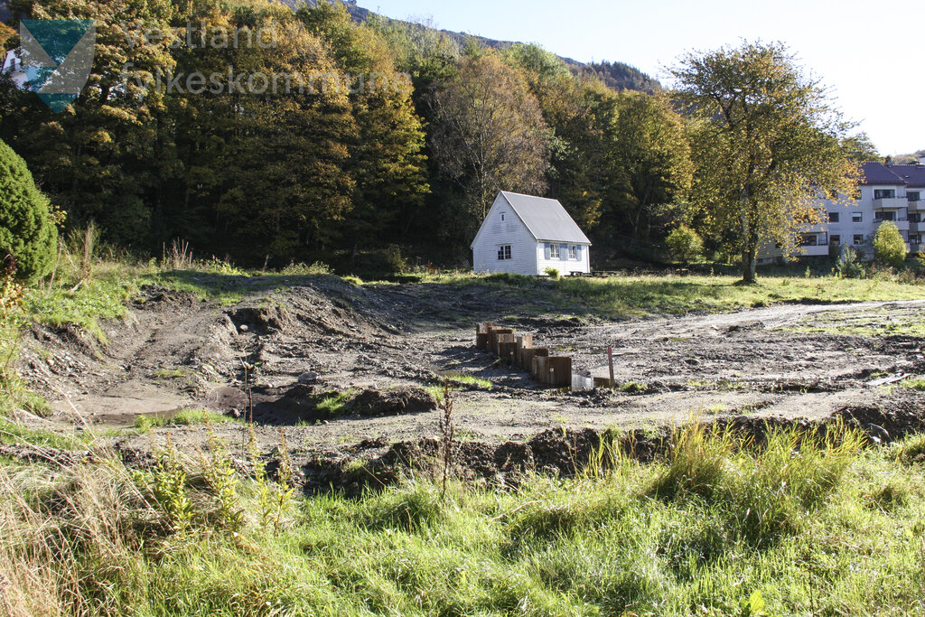 Historisk bilete frå bygginga av Fløen haldeplass for Bybanen linje 2 til Fyllingsdalen