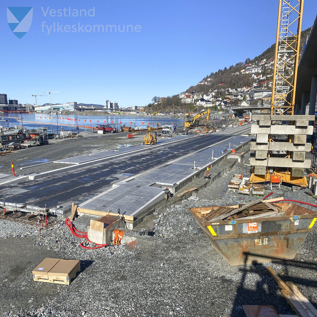 Historisk bilete frå bygginga av Fløen haldeplass for Bybanen linje 2 til Fyllingsdalen