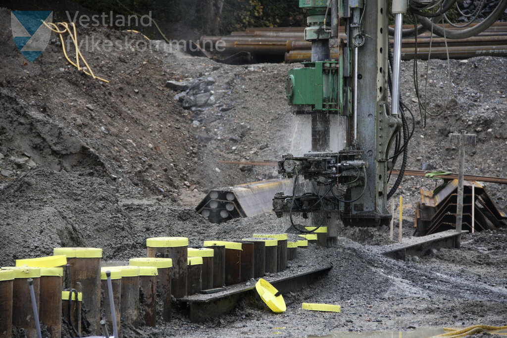 Historisk bilete frå bygginga av Fløen haldeplass for Bybanen linje 2 til Fyllingsdalen