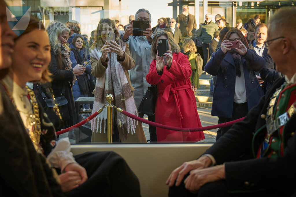 Biletet syner menneske som var til stades under markeringa av at Bybanen til Fylingsdalen er ferdig