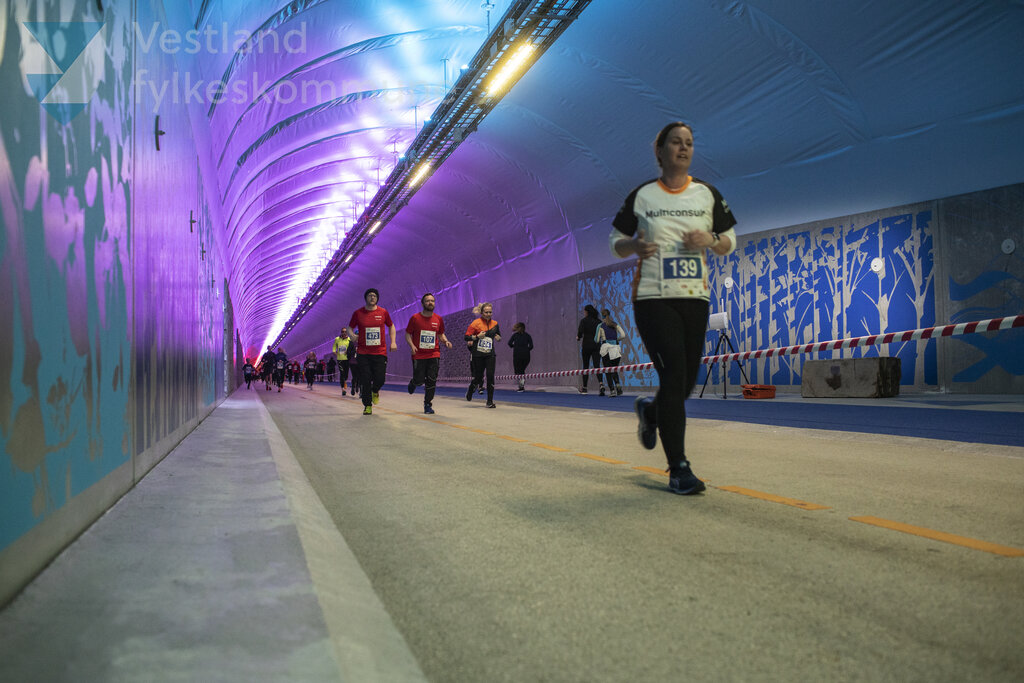 Deltakare i 5km Tunnelløp Fotografert 14.04.2023 i Fyllingsdalen, Bergen, i forbindelse med åpninga av Fyllingsdalstunnelen, verdeas lengste gang og sykkeltunnel.