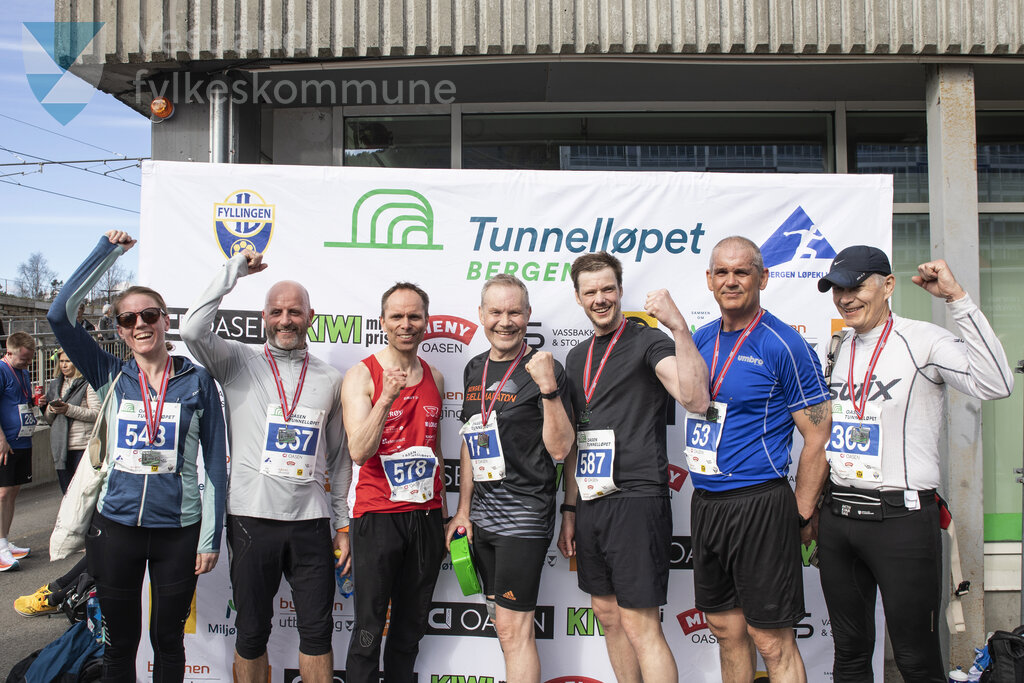 Deltakare frå Bybanen Utbygging i Tunnelløpet og publikum Fotografert 14.04.2023 i Fyllingsdalen, Bergen, i forbindelse med åpninga av Fyllingsdalstunnelen, verdeas lengste gang og sykkeltunnel.
