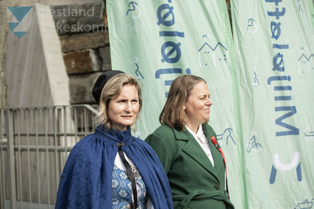 Vestland Municipal County member Marte Hammer and Commissioner for Climate Environment and Urban Development in Bergen City Council Ingrid Nergaard Fjeldstad. Photographed at Kronstad Bergen 14.04.2023 during the opening day of the new Kronstad Tunnel