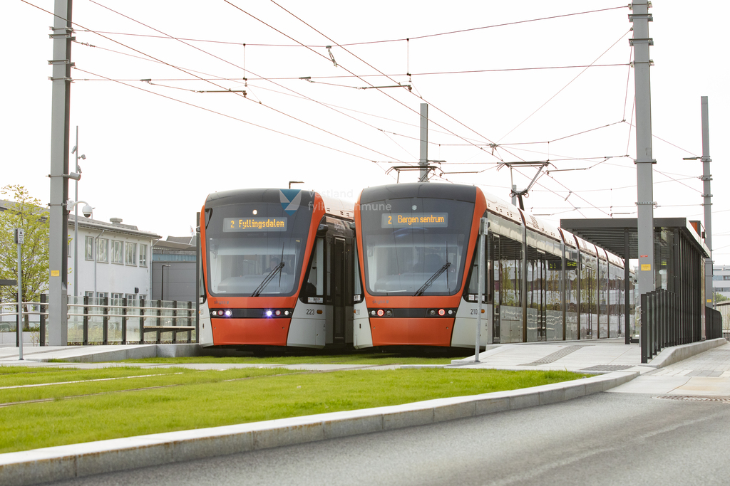 Bybanens linje 2 i trafikk ved Mindemyren