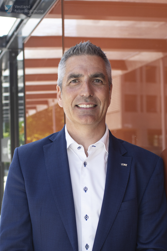 Jesper Asferg, konserndirektør for store infrastrukturprosjekt i COWI Fotografert 2.Juni 2023 i Kaigaten i Bergen i forbindelse med signering av kontrakt E03 - Prosjektering av Bybanen til Åsane som skal gjøres av COWI, Rambøll og Asplan Viak